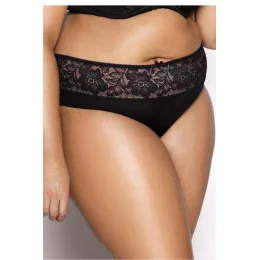 Originální kalhotky Hannah jsou k dispozici ve dvou barevných variantách: černé a bílé. Vyrobené z neobvyklé lehce lesklé krajky, sexy obepínající boky a zadek. V přední části trojúhelníkový vložka z tricotové látky. Bavlněný klín. Lem nohavičky na přední straně zdobený páskou.