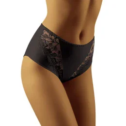 Gabe jsou mírně plnější kalhotky, které dokonale přilnou k tělu a pružně ho tvarují. Zcela hladká záda a přední díl jsou prošpikovány ozdobnou krajkou, která koketně přechází v přední části kompozice. Velké, jemné květy s krásně rozkvetlými poupaty se zde stávají inspirativním a výrazným prvkem, který vnáší úžasný, velmi ženský vzhled. Komfort v kombinaci s elegantním šarmem.