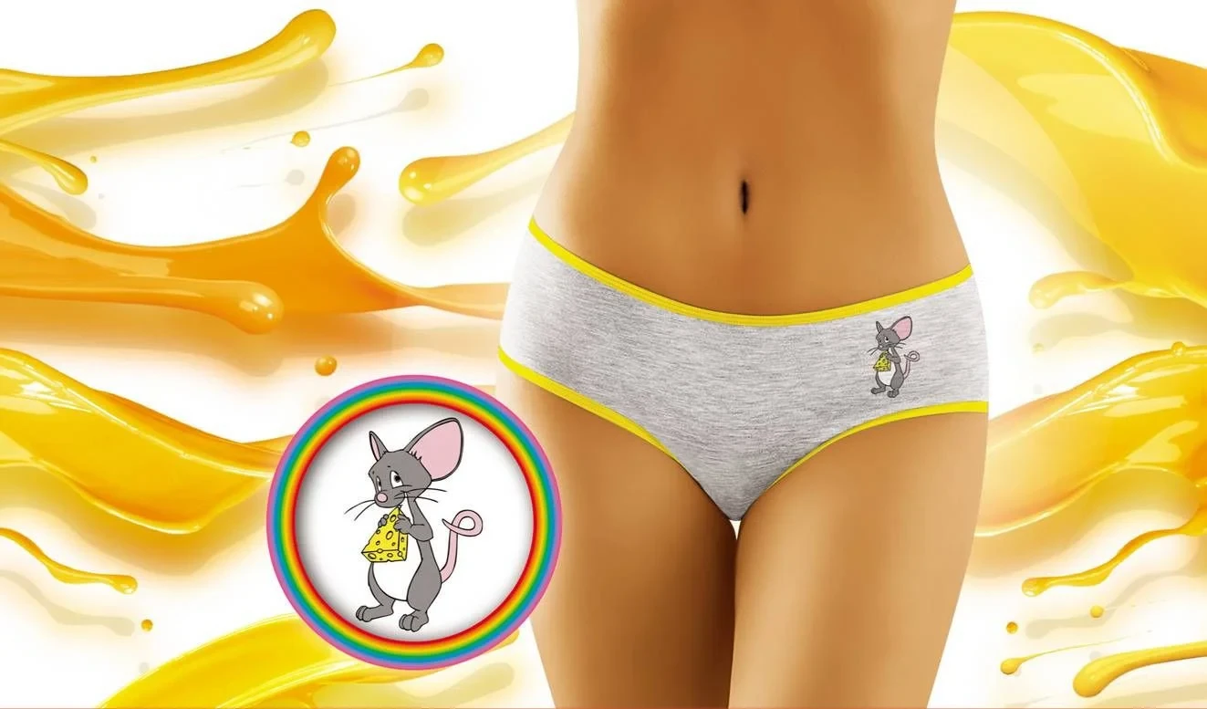 Seznamte se s nejnovější kolekcí spodního prádla značky Wol-bar! Řada Funny se vyznačuje nápaditými, vtipnými potisky, zajímavými barvami a především nejvyšší kvalitou (přírodní vlákna, nejlepší úplety a střih, který zajistí vaše pohodlí a komfort). V této verzi - malá, stydlivá, šedá myška...