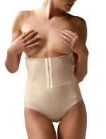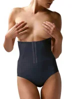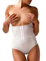 Korzet ve tvaru pásu, který stahuje břišní a bederní partie, a tím modeluje linii postavy. Dokáže zmenšit obvod o jeden rozměr, tedy až o 4 cm!!! Dokonale podepírá dolní část páteře díky využití zvláštního druhu výztuže. Je vyroben ze dvou vrstev tkaniny: vnější - modelující a vnitřní - bavlněné, která je příjemná na tělo. Celkově je velmi elegantní a současně praktický. Materiálové složení: 82 % polyamid, 18 % elastan.