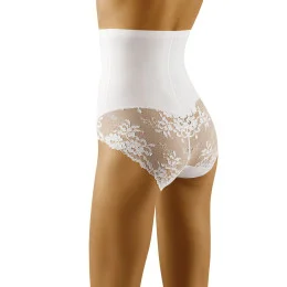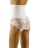 Kalhotky s vysokým pasem zdobené krajkou na hýždích. Tvarující linie pro břicho a boky. Hladká přední a zadní část ze specializovaného úpletu, jemně zeštíhluje tělo a zlepšuje tvar postavy. Vyšší pas rovněž opticky zeštíhluje oblast pasu, horní část je z vnitřní strany podšitá silikonem, zvyšuje komfort prádla a zabraňuje jeho sklouzávání z těla. Složení: 58 % polyamid, 42 % elastan.