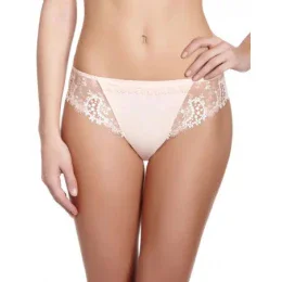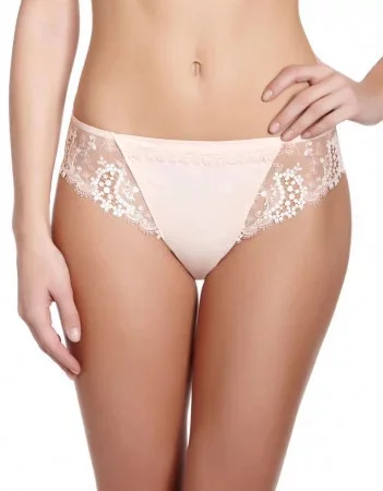 Kalhotky Wish 12B720 Simone Péréle mají v pase zdvojený lem ze saténu Jacquard dekorovaný páskem z výšivky Guipure, na bocích výšivku Guipure a vzadu plochý šev, pro neviditelný efekt pod oblečením. Materiál: 51% polyester, 32% polyamid, 9% elastan, 8% bavlna.