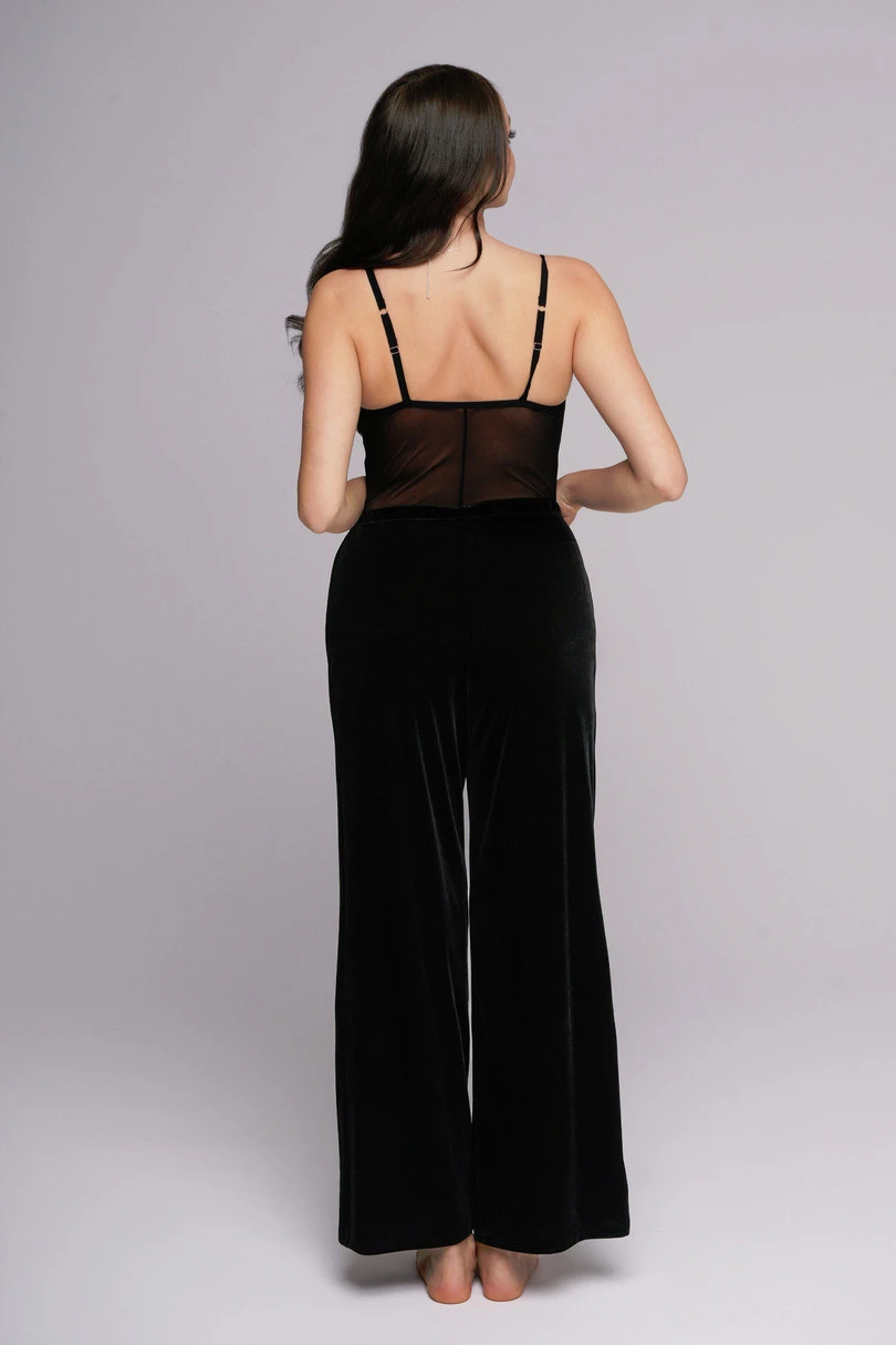 Nové velurové kalhoty AVA kombinují stylový materiál s pohodlným, ženským střihem.