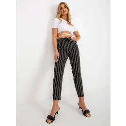 Černé letní pruhované látkové kalhoty PODLE ÚROVNĚ .