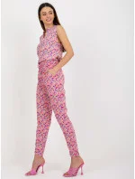 Růžové kalhoty z lehké květinové tkaniny PODLE ÚROVNĚ .