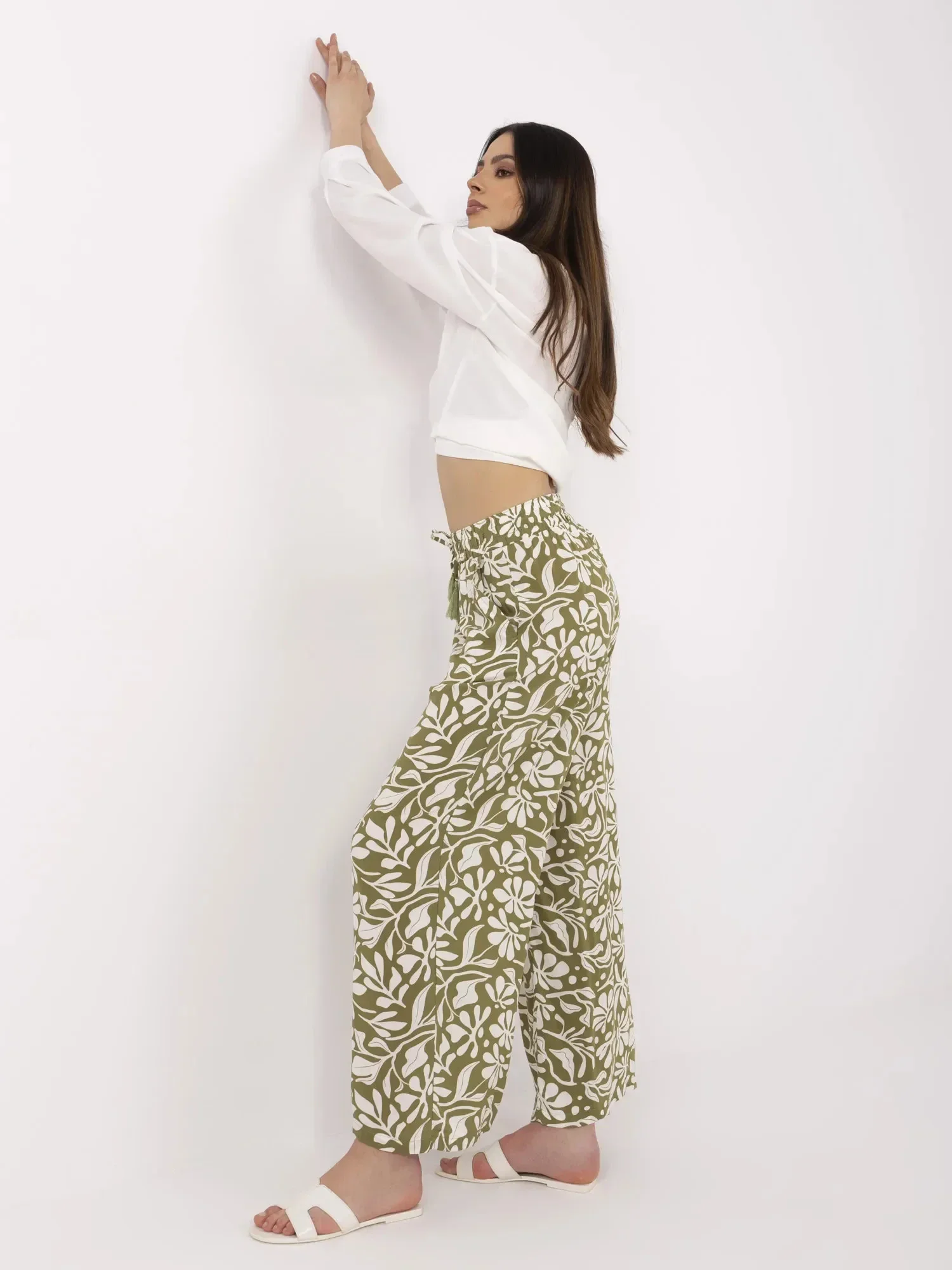 Rozměry kalhot velikosti S: šířka v pase - 34 cm (na plocho), šířka v pase - 48 cm (při natažení), výška v pase - 37 cm, šířka v bocích - 54 cm, celková délka - 101 cm.