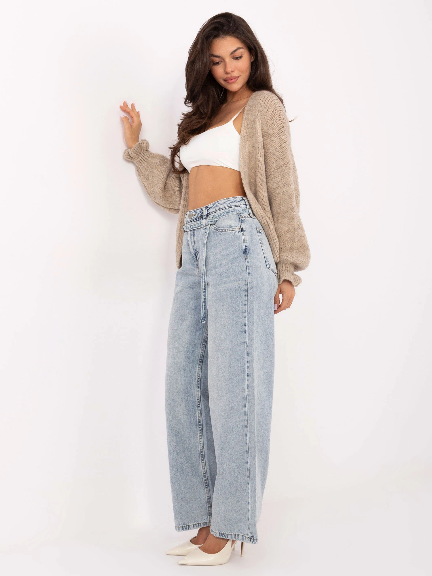 Modelka má na sobě velikost S. Rozměry modelky: výška 173 cm, prsa 85 cm, pas 62 cm, boky 95 cm.