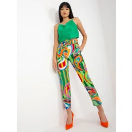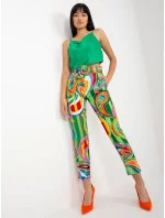 Zelené dámské cigaretové kalhoty s páskem .
