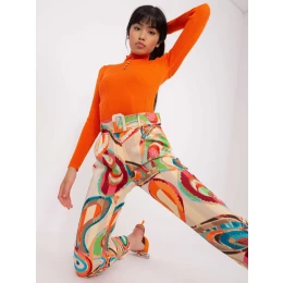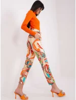 Béžové dámské kalhoty z potištěné látky .