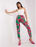 Zelené a růžové kalhoty s elegantním potiskem .