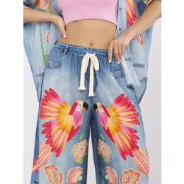 Rozměry kalhot jedné velikosti měřené na plocho: šířka v pase - 32 cm (na plocho), šířka v pase - 56 cm (při natažení), výška v pase - 34 cm, celková délka - 101 cm.
