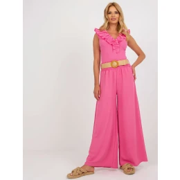 Růžové látkové palazzo kalhoty s vysokým pasem .