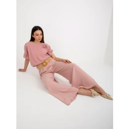Světle růžové letní látkové kalhoty s páskem .