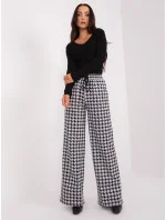 Černobílé vzorované látkové kalhoty.