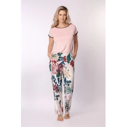 Wprowadź do swojej garderoby odrobinę egzotyki dzięki długim spodniom Margot w tropikalny wzór! Wykonane w 100% z oddychającej, miękkiej wiskozy, zapewniają komfort przez cały dzień – idealne zarówno do relaksu w domu, jak i na letni spacer. Luźny krój, elastyczny pas oraz praktyczne kieszenie sprawiają, że to must-have tego sezonu. Kolorowy nadruk roślinny nadaje spodniom modnego, wakacyjnego charakteru. Styl i wygoda w jednym!