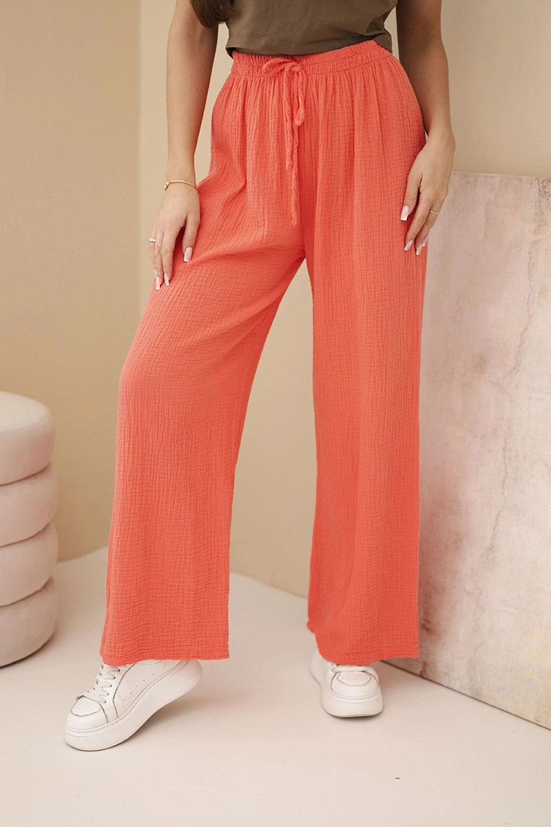 Kalhoty mušelínové s širokým nohavicí malinové