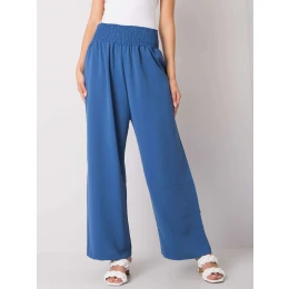 RUE PARIS Tmavě modré látkové kalhoty s vysokým pasem.