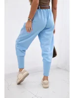 Kalhoty s páskem a kapsami z máslové látky tmavá máta
