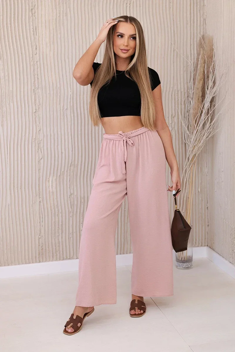 Široké kalhoty se zavazováním v pase jsou módní a pohodlnou volbou pro mnoho příležitostí. Široké nohavice dodávají celému stylingu volnost a lehkost, zatímco zavazování v pase umožňuje přizpůsobit kalhoty vašim individuálním preferencím. Jsou perfektní na letní procházky, neformální schůzky nebo večerní výlety, dodají vašemu stylu módní akcent a pohodlně se nosí. Tyto kalhoty se rychle stanou nenahraditelným prvkem vašeho šatníku, spojí funkčnost a styl. Velikost je univerzální a bude vhodná pro ženy, které nosí velikost S, M nebo L.