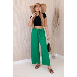 Široké kalhoty se zavazováním v pase jsou módní a pohodlnou volbou pro mnoho příležitostí. Široké nohavice dodávají celému stylingu volnost a lehkost, zatímco zavazování v pase umožňuje přizpůsobit kalhoty vašim individuálním preferencím. Jsou perfektní na letní procházky, neformální schůzky nebo večerní výlety, dodají vašemu stylu módní akcent a pohodlně se nosí. Tyto kalhoty se rychle stanou nenahraditelným prvkem vašeho šatníku, spojí funkčnost a styl. Velikost je univerzální a bude vhodná pro ženy, které nosí velikost S, M nebo L.