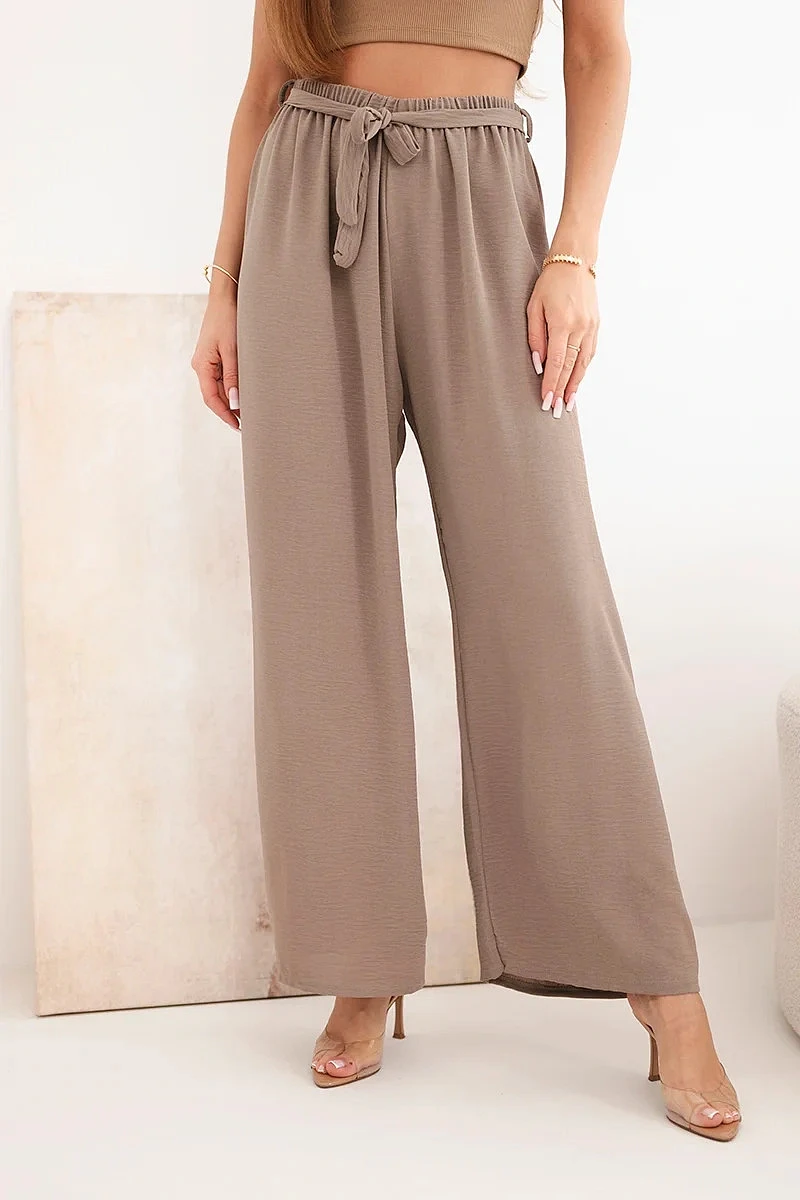 Kalhoty se širokým střihem a zavazováním v pase mocca