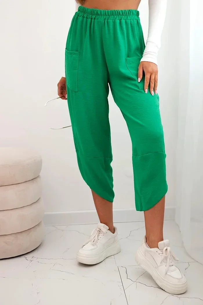 Kalhoty se širokými nohavicemi a kapsami zelený