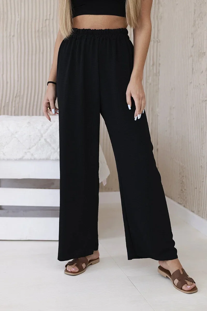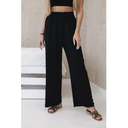 Široké viskózové kalhoty jsou jedinečným kouskem oblečení, který kombinuje pohodlí a eleganci. Tyto kalhoty, vyrobené z lehkého a vzdušného viskózového materiálu, zaručují nejen svobodu pohybu, ale také se budete cítit lehce a svěže po celý den. Široká nohavice dodává kalhotám charakteristický, volný střih, který je módní i pohodlný. Díky tomuto prvku vypadají kalhoty mimořádně stylově a působivě a dodává originalitu každému stylu. Univerzální design širokých kalhot je předurčuje pro různé příležitosti a styly. Můžete je nosit jak ke každodennímu ležérnímu outfitu, tak k elegantnějším soupravám na pracovní schůzky nebo večerní výlety. Široké viskózové kalhoty jsou perfektní volbou pro ženy, které oceňují pohodlí a styl. Díky univerzálnímu designu a kvalitnímu zpracování jsou tyto kalhoty nenahraditelným kouskem šatníku, který skvěle doplní každou kolekci oblečení. Velikost je univerzální a bude vhodná pro ženy, které nosí velikost S, M nebo L.