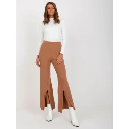 Velbloudí úpletové kalhoty s širokými nohavicemi a rozparkem .