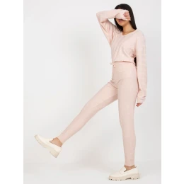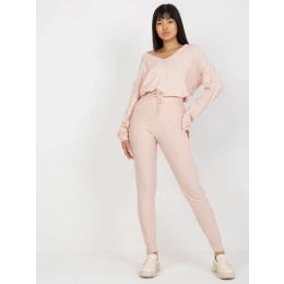 Světle růžové dámské pletené kalhoty se zavazováním .