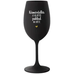 KAMARÁDKA JE NEJVĚTŠÍ POKLAD NA SVĚTĚ - černá sklenice na víno 350 ml