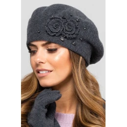 Pokrývky hlavy od společnosti Kamea. Model Barcelona. Výrobek je vyroben z 80 % z vlny a 20 % z polyamidu. Výrobek pro ženy.