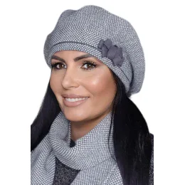Pokrývky hlavy od společnosti Kamea. Model Helena. Výrobek byl vyroben z 50 % akrylu, 30 % vlny, 10 % viskózy a 10 % alpaky. Výrobek pro ženy.