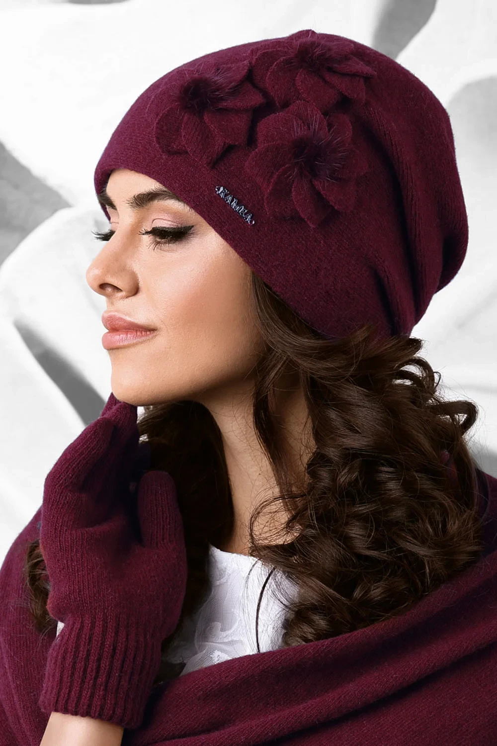 Dámská pokrývka hlavy značky Kamea, model Teramo. Výrobek je vyroben z 80 % z vlny, 20 % z polyamidu. Vlastnosti výrobku: vlna. dámský výrobek.
