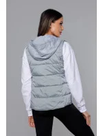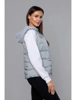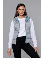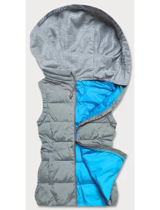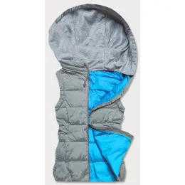 Šedo-světle modrá dámská vesta s látkovou kapucí (DW-21604)