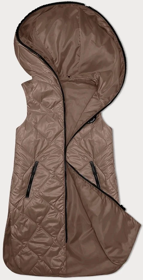 Dámská vesta ve velbloudí barvě s ozdobným prošíváním (B8230-101)