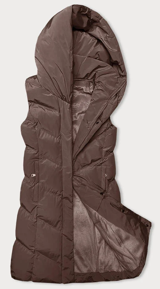 Hnědá dámská vesta se stojáčkem a kapucí (23-011)
