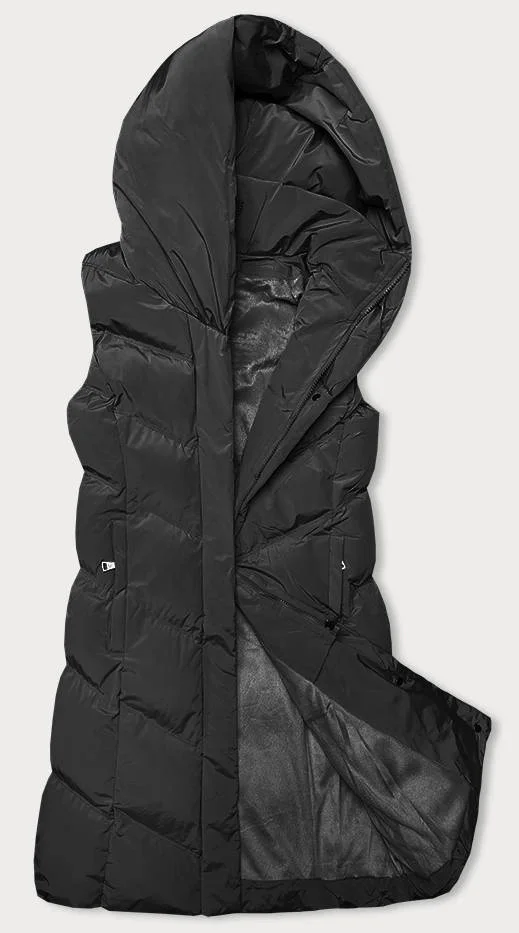 Černá dámská vesta se stojáčkem a kapucí (23-011)