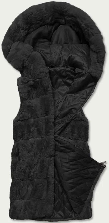Vesta má kapuci, dvě kapsy a zapíná se dvousměrným zipem. Model má délku do poloviny stehen.