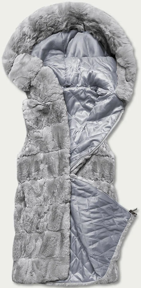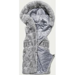 Šedá kožešinová vesta s kapucí (B8059-9)