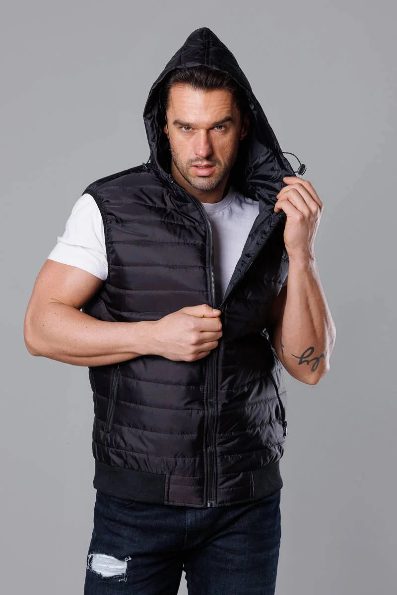 Černá pánská vesta s kapucí (8MY88-1)