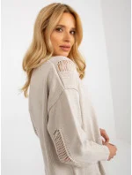 Béžový pletený svetr volného střihu od značky RUE PARIS .