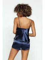 Krásná souprava na spaní - spojuje ženskost, smyslnost a eleganci. Je saténová, lehce perleťová a hladká. Vypadá krásně v každé velikosti. Halenka na ramínka. Šortky na pohodlnou gumu. Složení: 100% polyester.