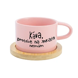 Keramický hrneček s bambusovým podtáckem – KÁVA, PROTOŽE NA KOKAIN NEMÁM