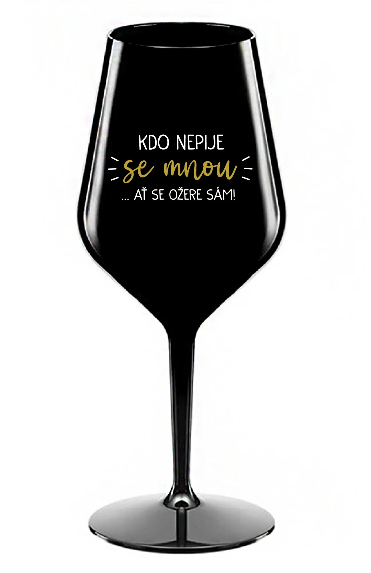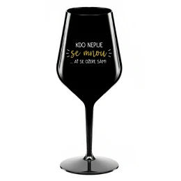 KDO NEPIJE SE MNOU...AŤ SE OŽERE SÁM! - černá nerozbitná sklenice na víno 470 ml