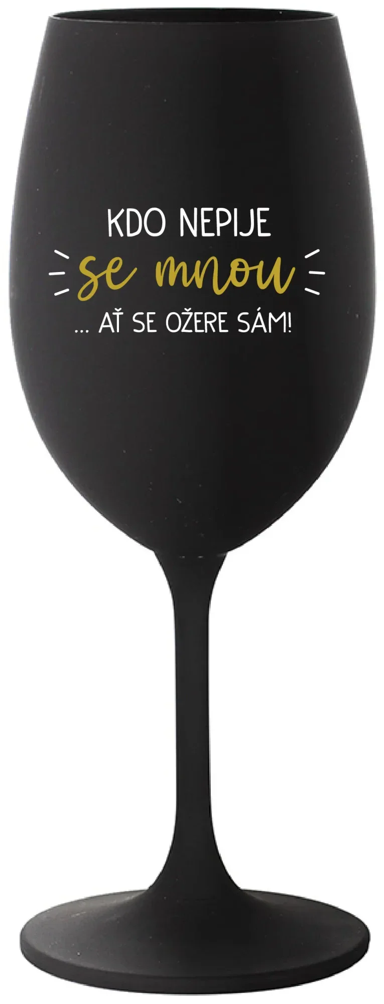KDO NEPIJE SE MNOU...AŤ SE OŽERE SÁM! - černá sklenice na víno 350 ml