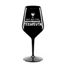 KDYŽ MÁŠ VÍNO, NEPOTŘEBUJEŠ TERAPEUTA - černá nerozbitná sklenice na víno 470 ml
