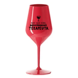 KDYŽ MÁŠ VÍNO, NEPOTŘEBUJEŠ TERAPEUTA - červená nerozbitná sklenice na víno 470 ml