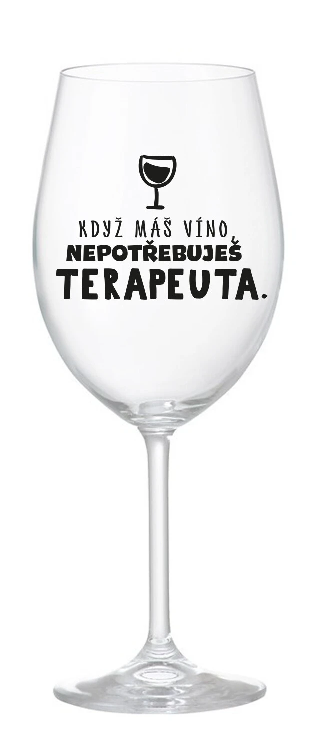 KDYŽ MÁŠ VÍNO, NEPOTŘEBUJEŠ TERAPEUTA - čirá sklenice na víno 350 ml