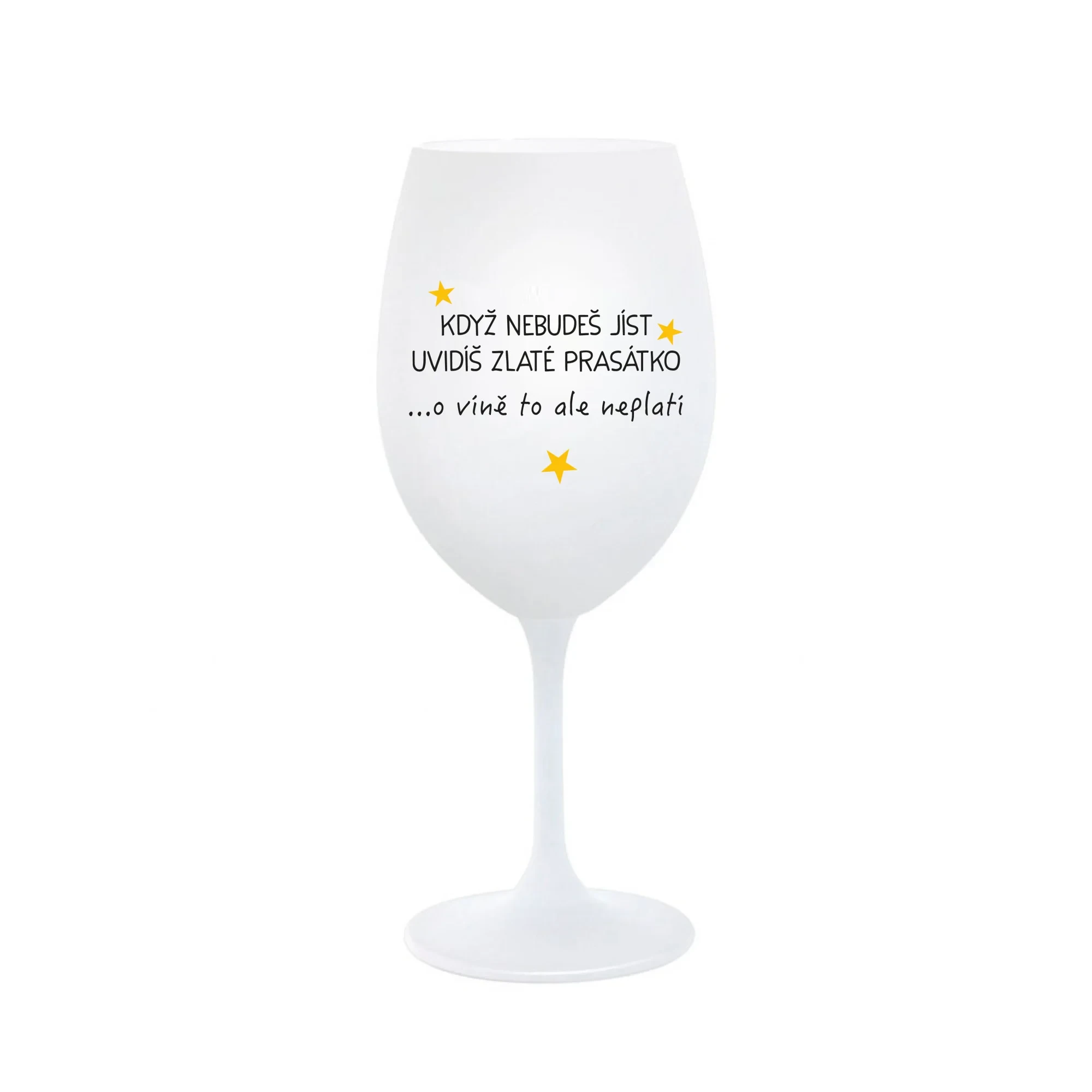 KDYŽ NEBUDEŠ JÍST, UVIDÍŠ ZLATÉ PRASÁTKO - bílá sklenice na víno 350 ml