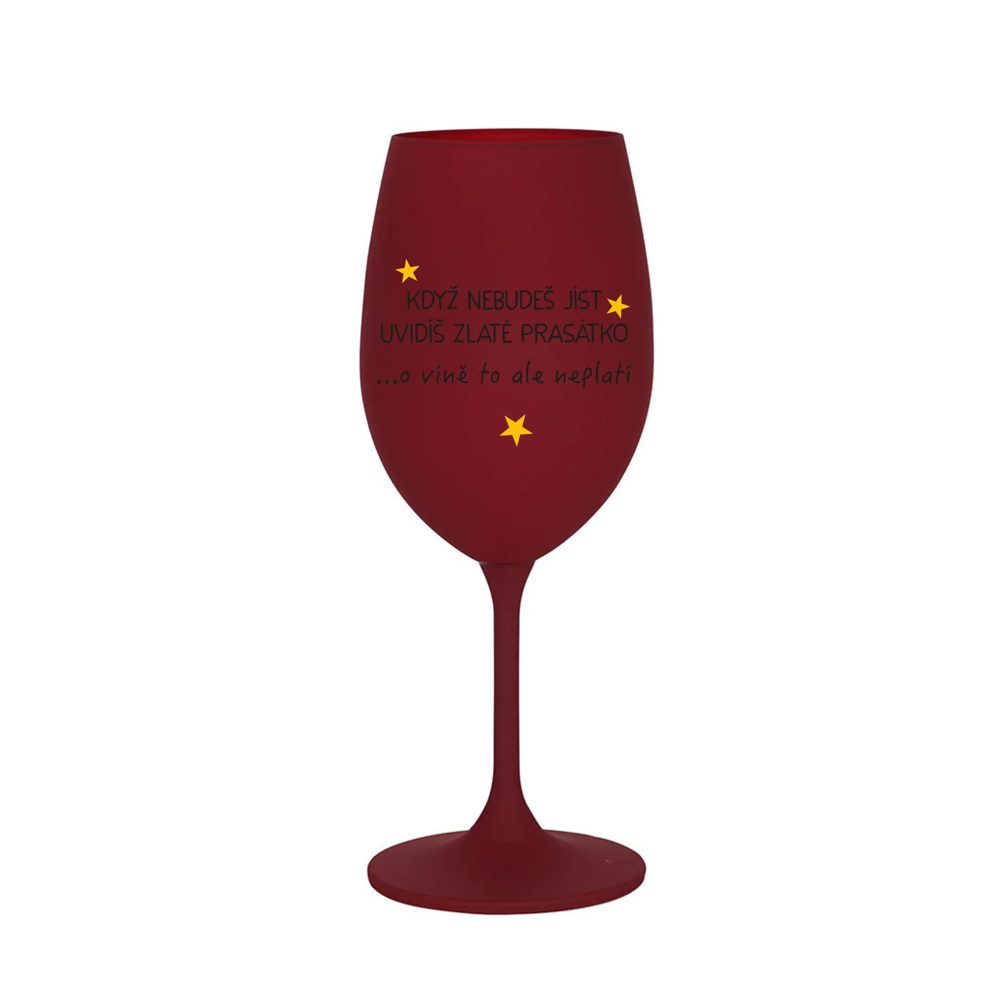 KDYŽ NEBUDEŠ JÍST, UVIDÍŠ ZLATÉ PRASÁTKO - bordo sklenice na víno 350 ml